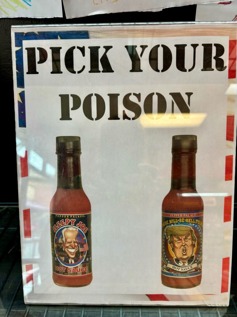 Léo et Axel (surtout Axel) ont dévalisé les boutiques ! Ils ont même acheté des sauces à l’effigie de Donald Trump et Joe Biden (le service marketing n’a pas encore fait la mise à jour avec Kamala Harris !).