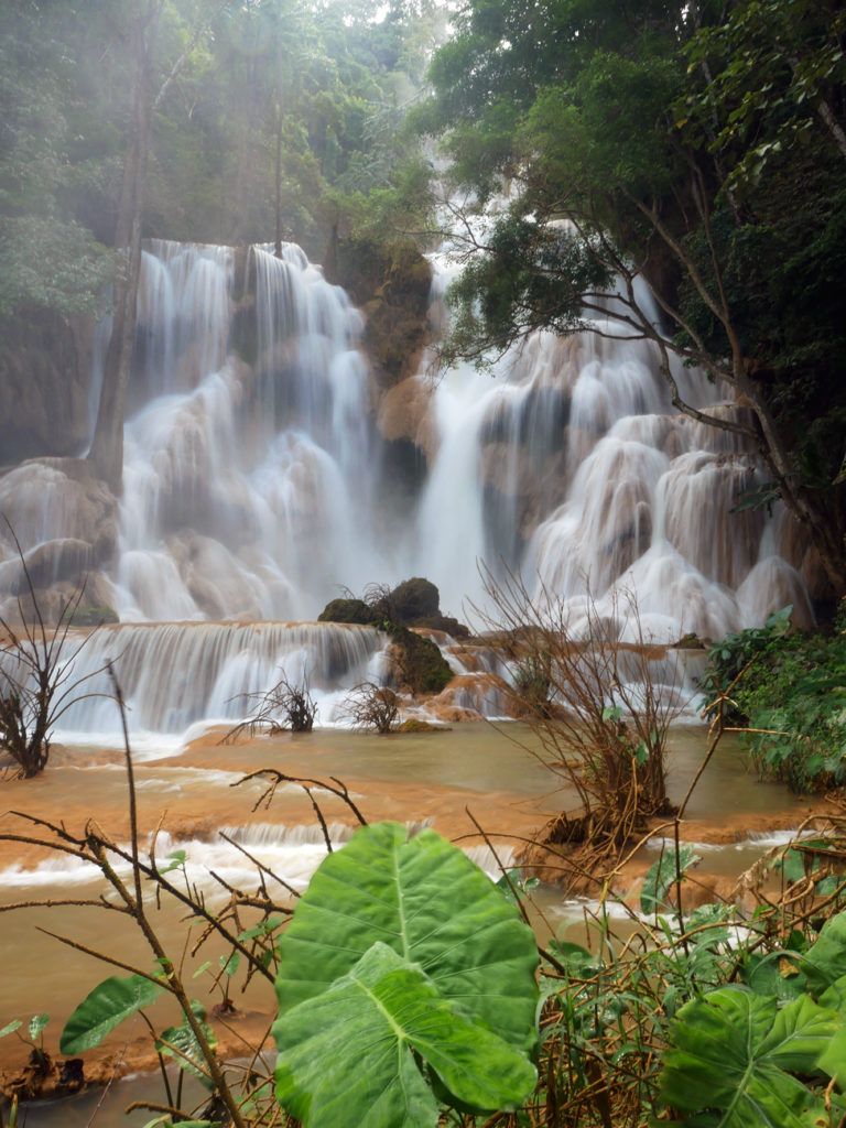 En temps normal, les chutes de Kouang Si, c’est comme sur la photo juste en-dessous. Le bleu leur va mieux que le marron, non ?