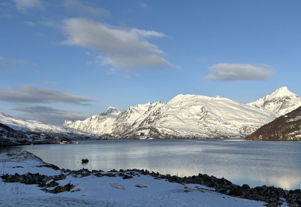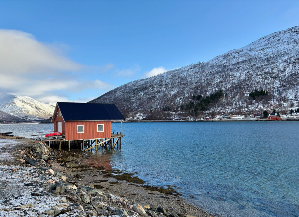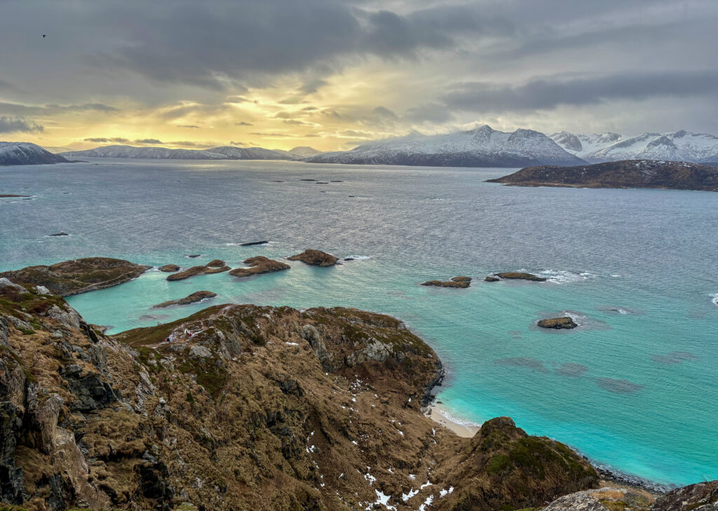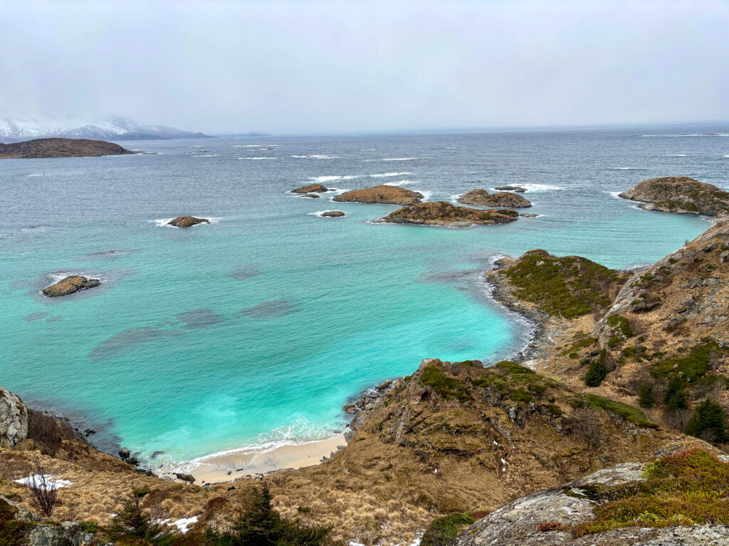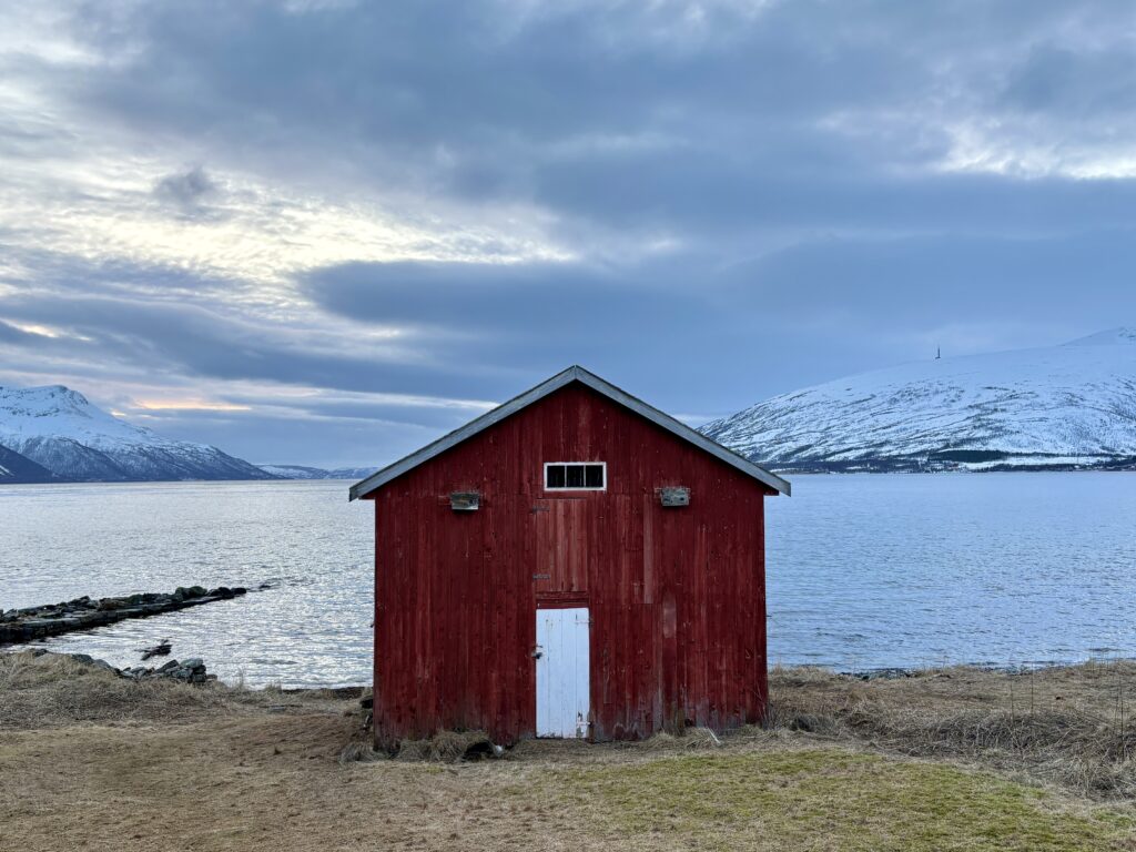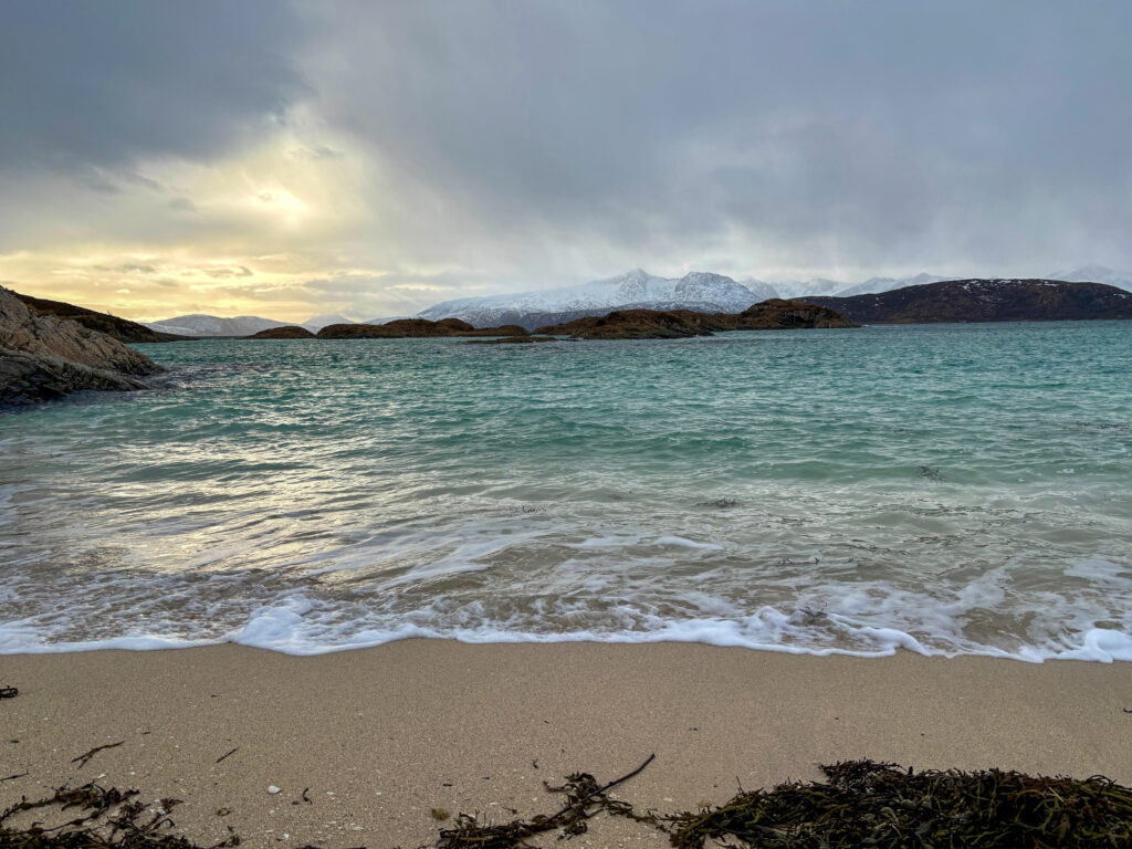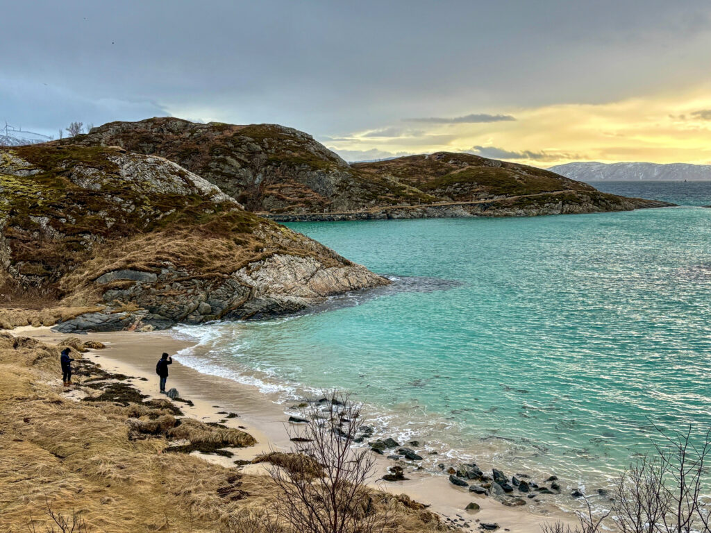 Nous allons faire un tour vers la plage de Telegrafbukta, au sud-ouest de l’île de Tromsø. Bon, on a vu de plus belles plages ! C’est un pauvre croissant de sable gris. La vue et le parc sont quand même chouettes.