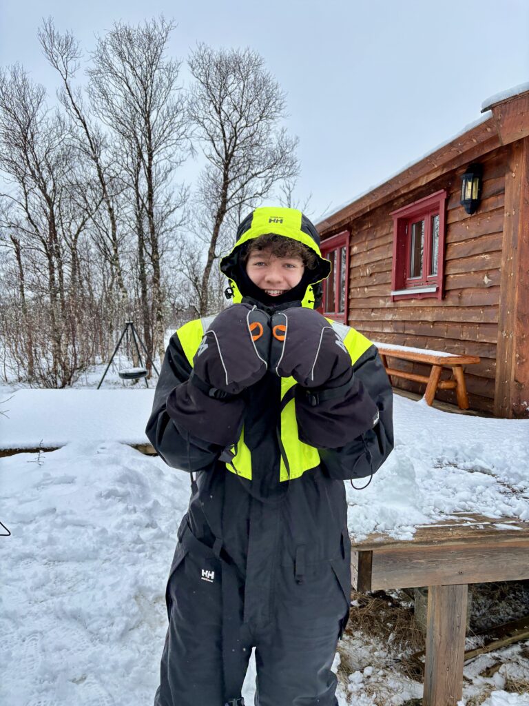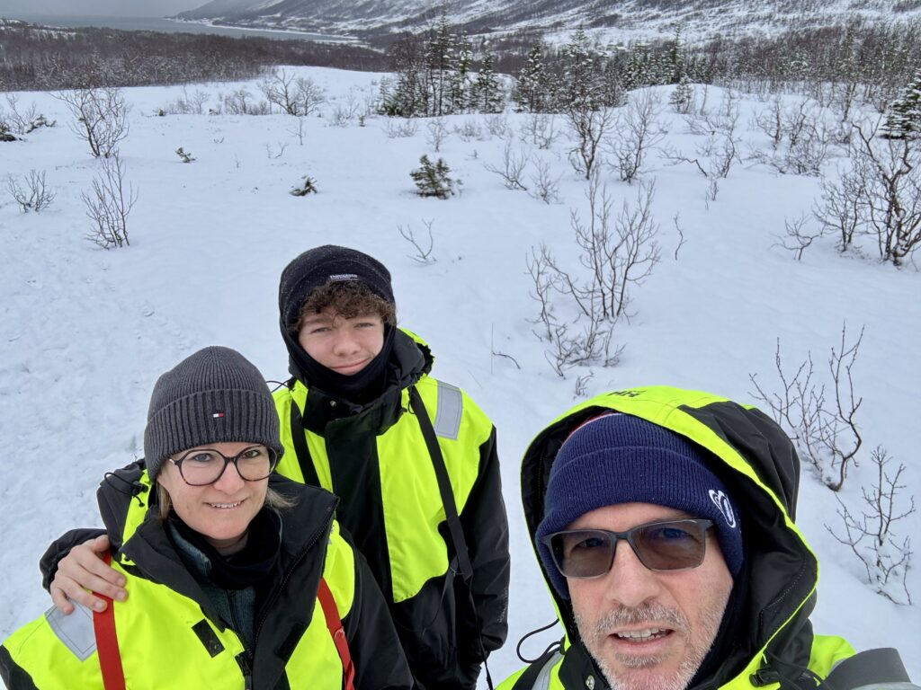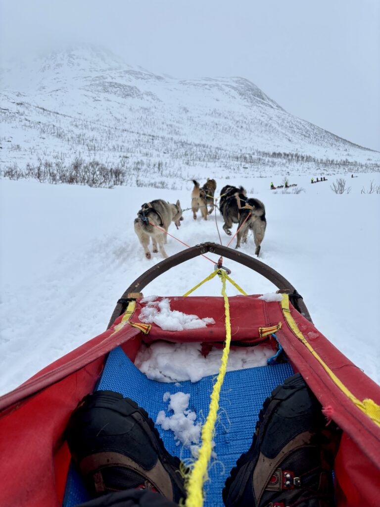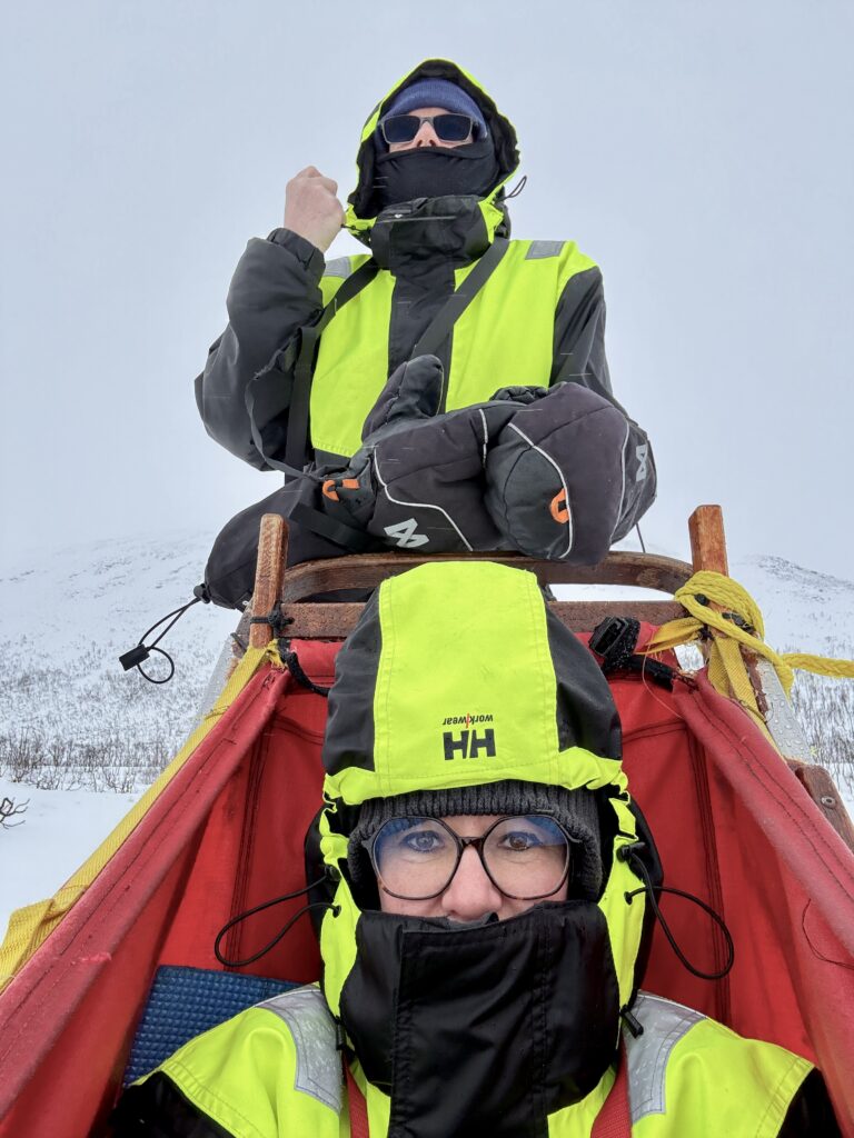 La météo peut changer du tout au tout, du jour au lendemain, en Norvège. Le soleil a laissé place à la neige. Une quinzaine de centimètres de poudreuse est tombée dans la nuit et continue de tomber ce matin. Ça tombe bien car le programme de la journée c’est de faire une sortie en traîneau.