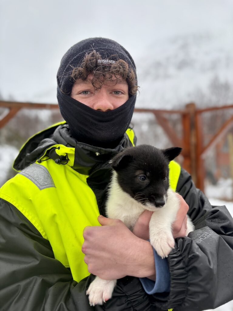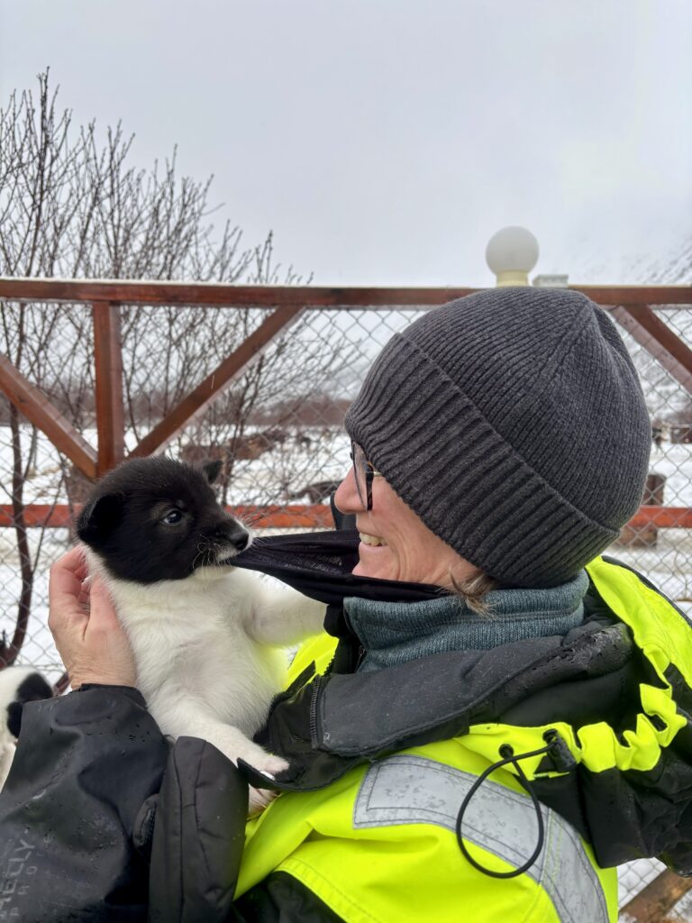 Après un café pris dans la cabane autour d’un bon feu, on est invités à rendre visite aux plus jeunes chiens et aux chiots qui sont nés il y a à peine 4 semaines. Trop choupinou !