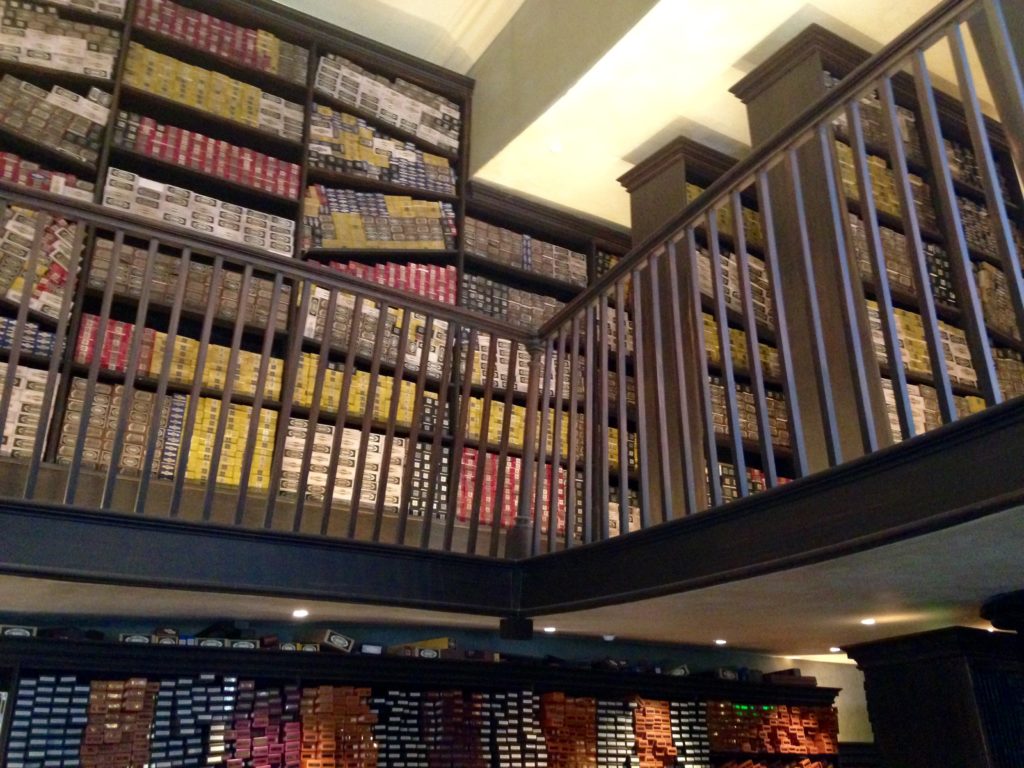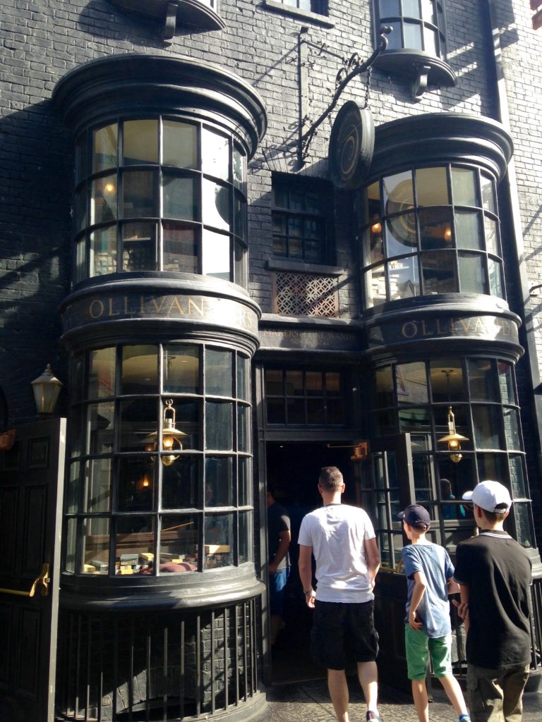 Axel nous fait passer un long moment chez Ollivander, la boutique de baguettes magiques. Il veut s’en acheter une et à du mal à choisir. Après avoir ouvert des dizaines de petites boîtes qui tapissent les murs, finalement c’est la baguette d’Harry Potter qui fera son bonheur.