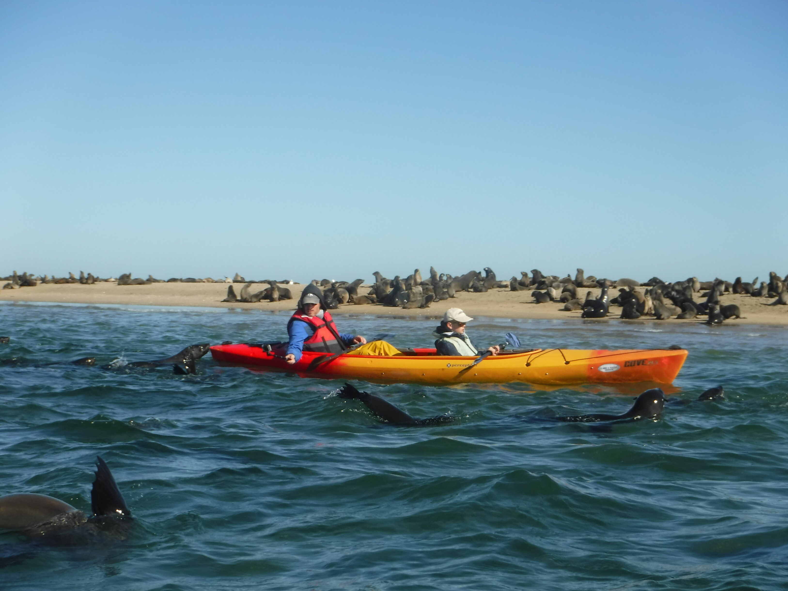 Kayak parmi les otaries de Pelican Point Publié le 26 juillet 2017 à 3253 × 2440 dans Walvis Bay en rose et gris